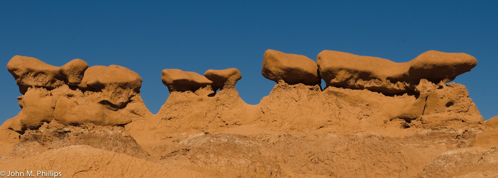 I also tried a few more panoramic shots, but the goblins tended to get lost and the shots did not bring out the unusual qualities of the formations.